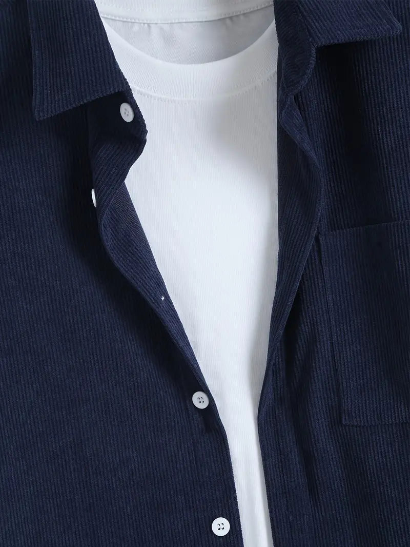 For those seeking a sophisticated yet comfortable look, consider our European and American Fashion Men's Casual Basic Solid Color Corduroy Short Sleeve Shorts Set. Made with a slight stretch polyester fabric, this set features a solid color pattern and lapel collar. It is suitable for spring or summer wear and can be machine washed or professionally dry cleaned. Both the tops and bottoms are composed of 100% polyester material.