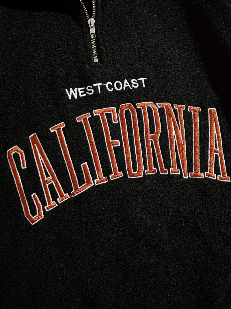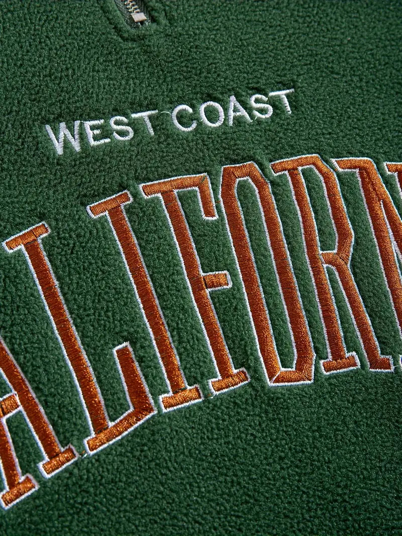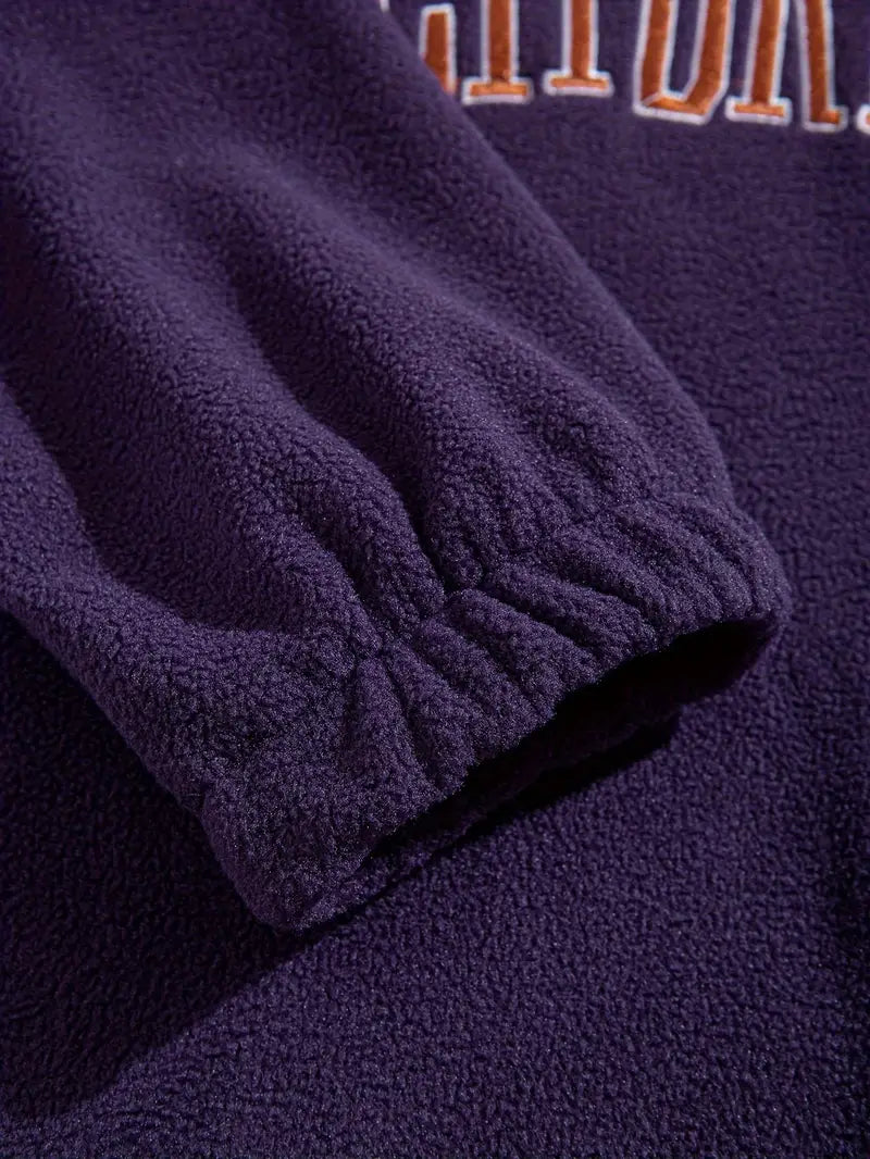The product features a Mid-Collar 1/4 Zip Half-Open Cardigan Pullover made with 100% Polyester and detailed with Embroidery Fleece Sweatshirt material. The Long Sleeve design includes embroidered patterns, a slight stretch fabric, and a collared neck for a Preppy style. To maintain the quality, please hand wash and avoid dry cleaning. The fabric was knitted with precision and features Positioning Printing for an added touch. This Regular fit cardigan has a Secondary Process of Embroidery and weighs 210 grams.
