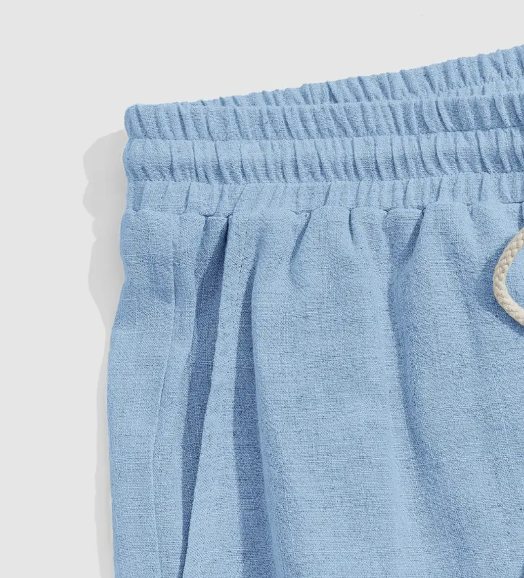 The recommended care for these Polyester men's drawstring waist shorts includes hand washing. They have a loose, regular fit and a slight stretch, making them the perfect choice for casual volleyball games. The solid color, pocket details and tropical bohemian pattern add style.