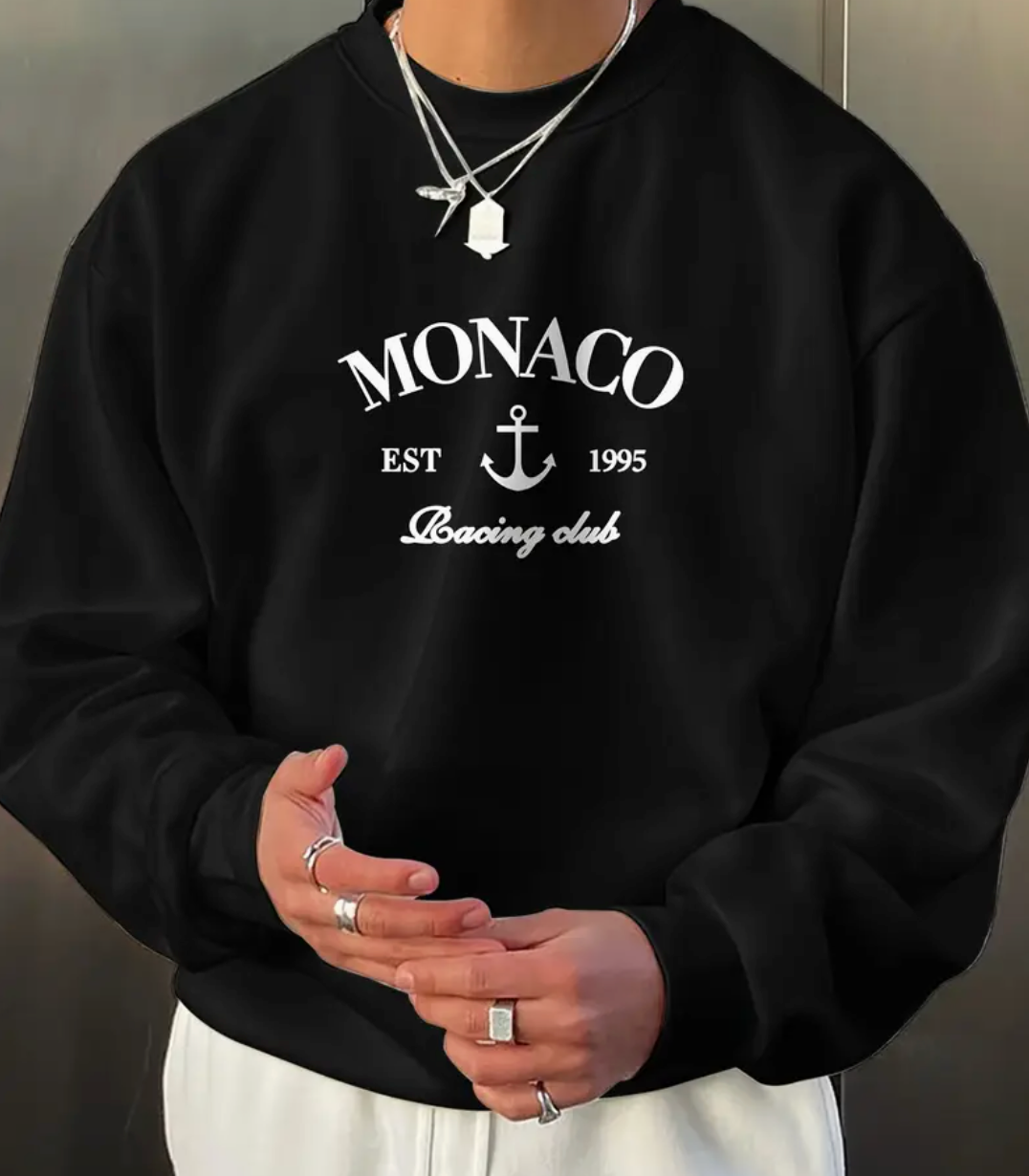 The pullover sweatshirt for men, known as MONACO, offers a cozy and stylish top perfect for hip hop streetwear. Made of 100% polyester, this sweatshirt features a patterned design with alphabets and slight stretch fabric. The crew neck and loose fit add to its casual style, while the knit fabric and positioning printing make it a unique addition to your wardrobe. For maintenance, simply machine wash for convenience and do not dry clean. Great as a gift idea, this sweatshirt is perfect for the autumn and winter fashion season.