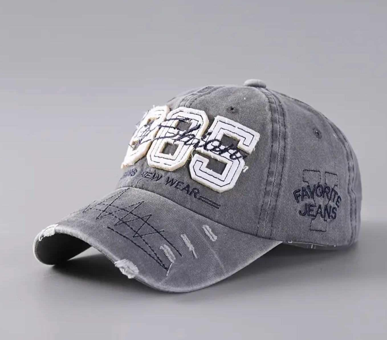 This vintage-style baseball cap features a lightweight polyester construction with a distressed 1985 design, highlighted by geometric lines and a faded jeans pattern. Its stretch fit and drawstring closure ensure comfort and adaptability, making it ideal for outdoor activities, gym sessions, and casual gatherings. Designed for all-season wear, this woven dad hat is a thoughtful gift choice for men, dads, and women seeking a stylish yet functional accessory. Hand wash only to maintain its quality and appearance.